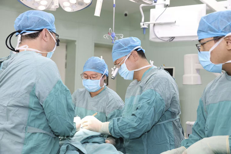 手术过程中,由于患者左侧胸壁曾接受放疗,胸廓内动静脉存在畸形且弹性减弱,为血管吻合带来极大困难。回天立、王新乐副主任医师凭借精湛技艺,在直径仅约1毫米的血管上小心精细操作,最终成功完成血管吻合,确保皮瓣在安全期内恢复有效血运。术后,病区护理团队密切监护,患者顺利度过危险期,早期即可下床活动,康复进程平稳,术后一周出院。